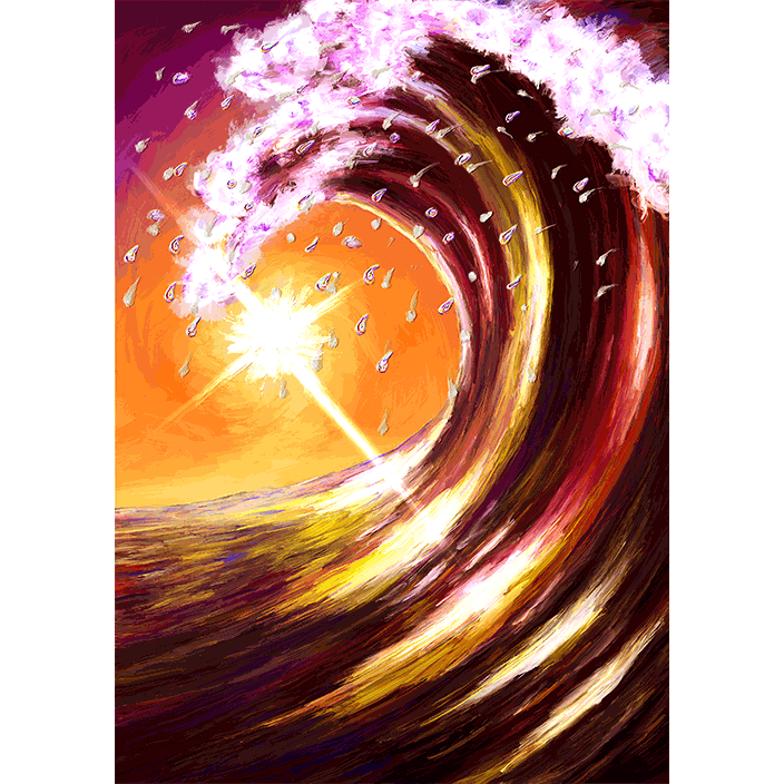 夕陽に煌めく高波