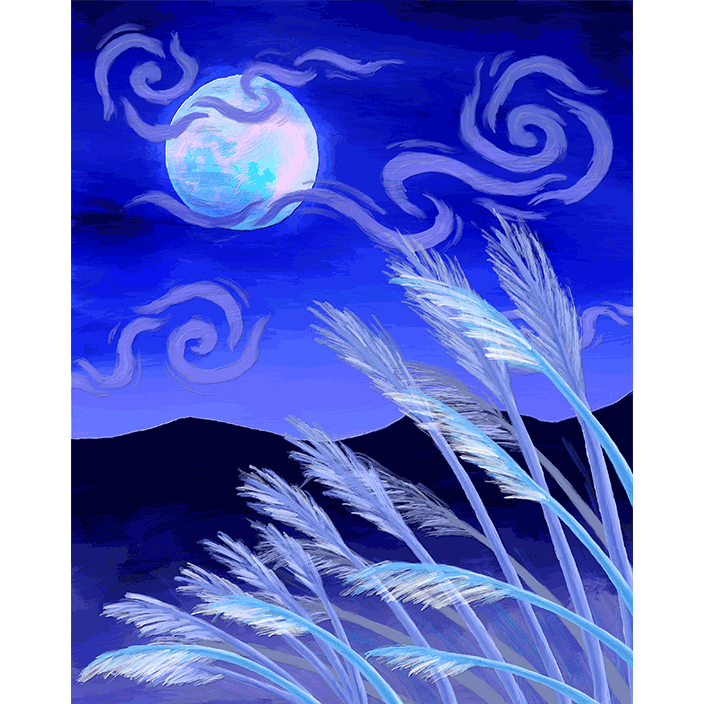 深き青空に浮かぶ真珠が如く月光
